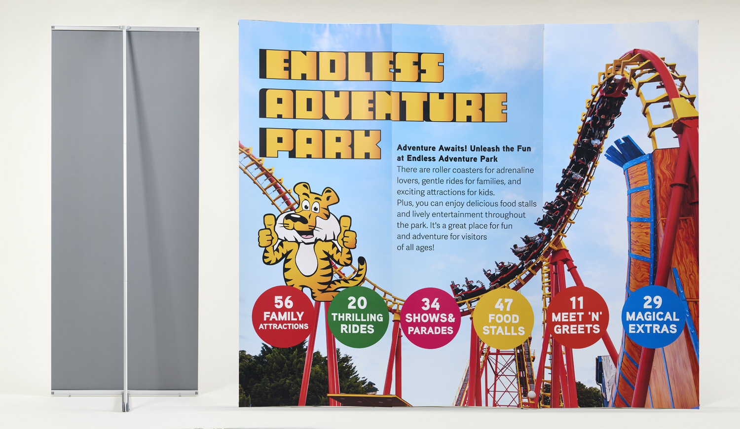 - Roll-Up Banners: eenvoudig op te zetten, met automatisch oprolbaar doek.
