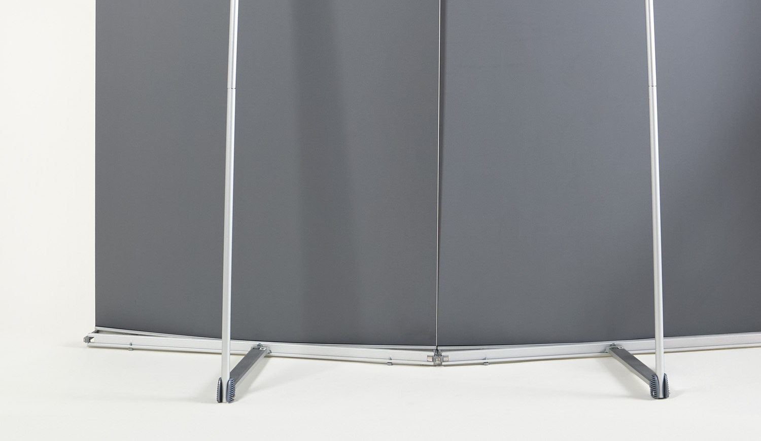 Het L-bannerdoek geeft je ideeën op een lichte en stijlvolle manier vorm. Elke module van 80x200 cm kan magnetisch aan de andere modules worden gekoppeld om een rechte of gebogen achtergrond tot 240 cm te creëren. Het met ultradun klittenband aangebrachte doek vormt een doorlopende afbeelding: geen kaders, maar één ononderbroken beeld. In een handomdraai gemonteerd, eindeloos herbruikbaar en op elk gewenst moment vervangbaar.