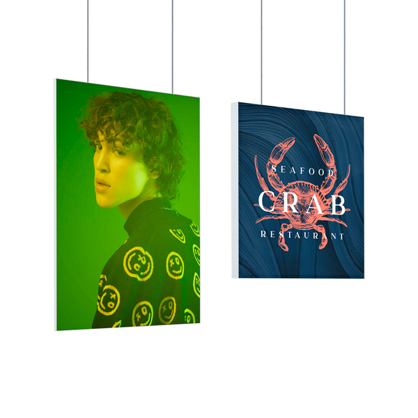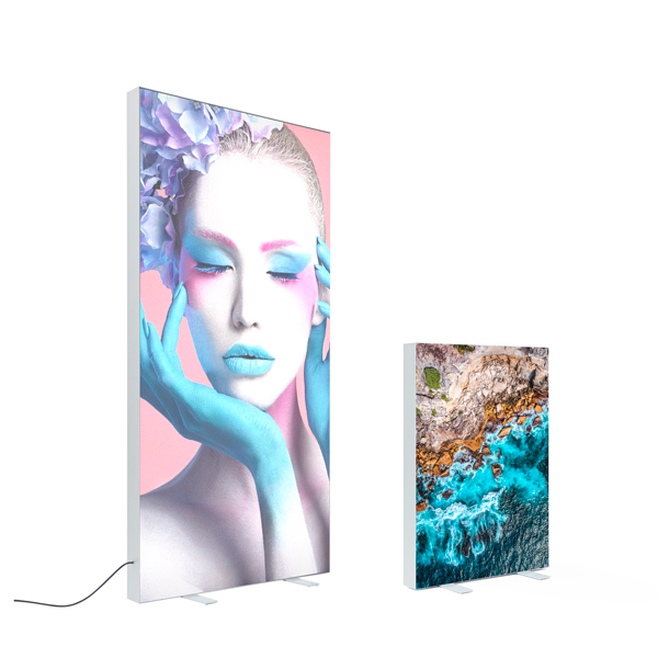 - Staande frames met verlichting: 2 modellen (enkelzijdig of dubbelzijdig), 4 formaten
