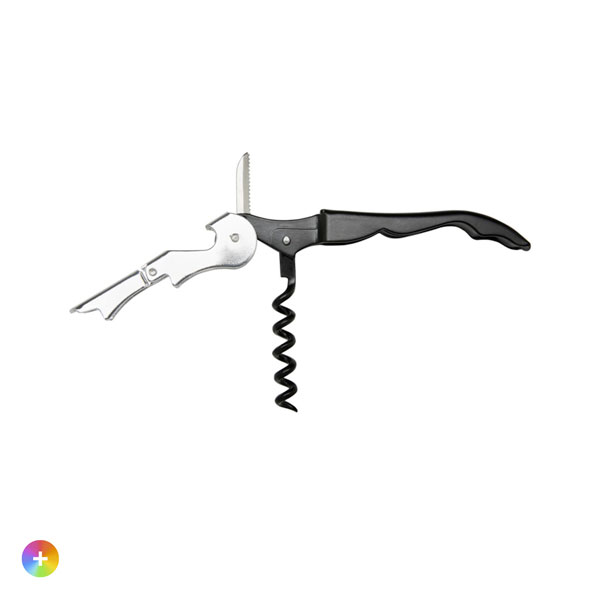 - Multifunctionele messen met gepersonaliseerde flessenopeners: Plastic messen met roestvrijstalen onderdelen, bestaande uit een flessenopener, kurkentrekker en folie-snijker. Verkrijgbaar in zwart of wit, kan gepersonaliseerd worden op het lichaam van het artikel of direct op het oppervlak van de kurkentrekker met twee verschillende drukmethoden.